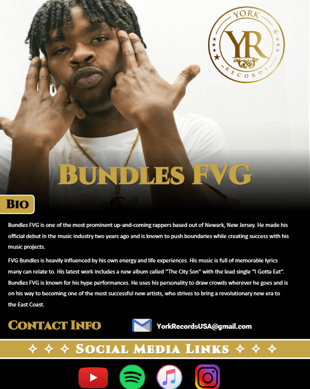 Bundles FVG is one of the most prominent up-and-coming rappers based out of Newark, New Jersey. He made his official debut in the music industry two years ago and is known to push boundaries and create success with any project.